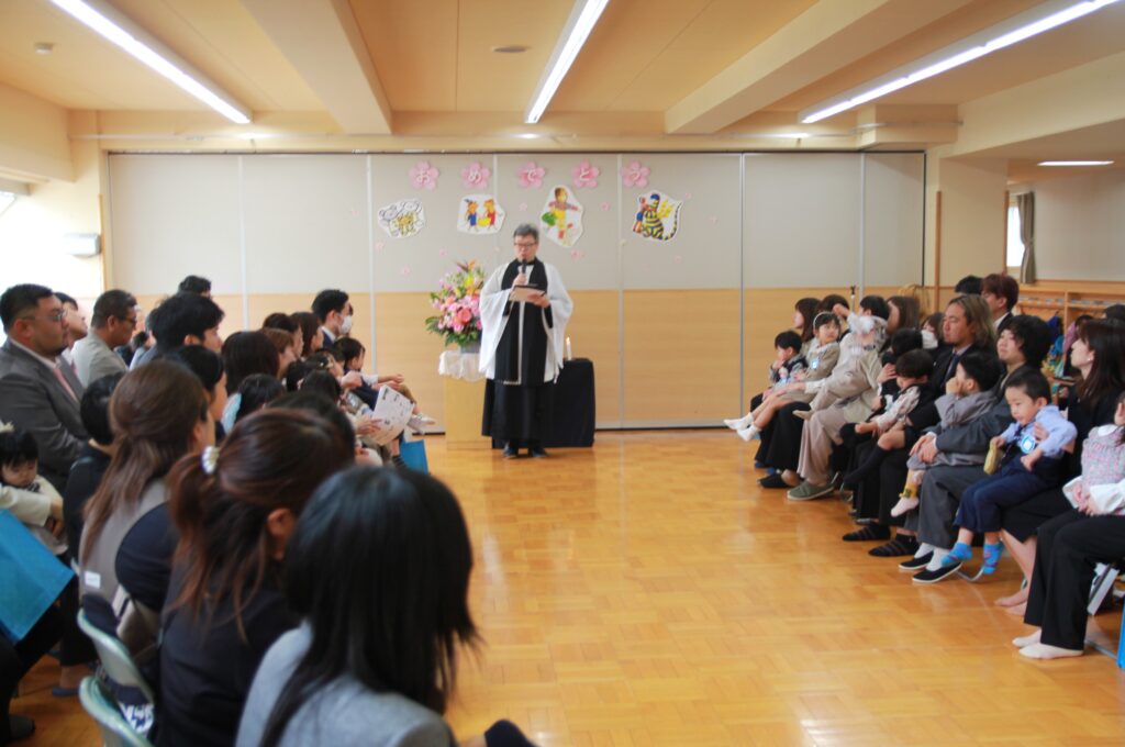 4月10日(金)は、満3歳クラスの子どもたちの「はじめましてのかい」と、新たに入園する年少・年中・年長児の「入園式」を行いました。新しい環境・新しい先生たちとの出会いは緊張の連続であったことでしょう。これから幼稚園生活を送る中で、そのドキドキをワクワクに変えていけるよう職員一同力を合わせていきます。