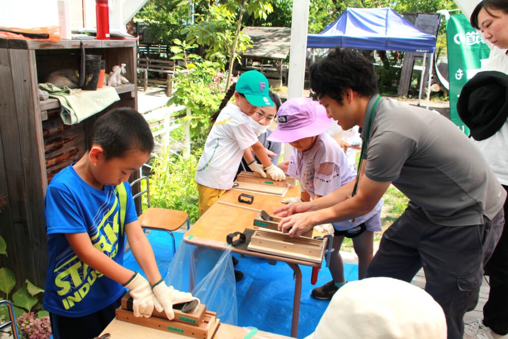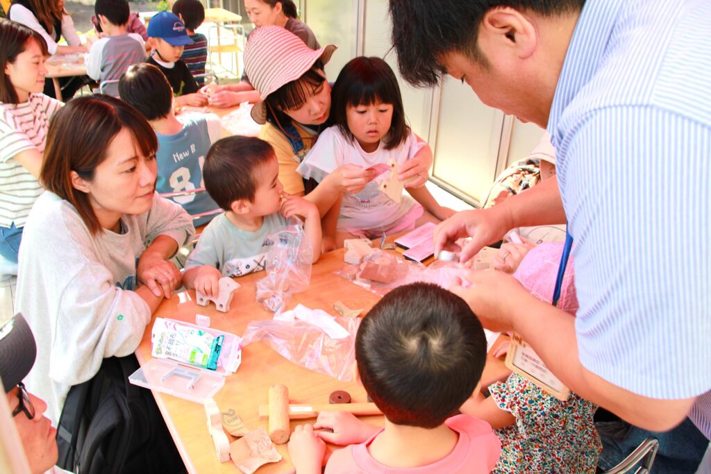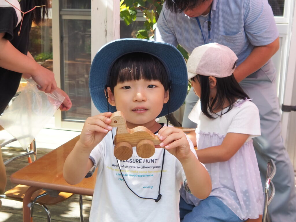 9月27日(土)、今年度3回目の園庭開放を行いました。午前の部、午後の部合わせて140名ほどのご参加をいただき、園庭はとてもにぎやかな声で包まれました。午後からは空知振興局林務課の皆さんによる木育体験があり、「道産木材マイ箸作り」「森の動物おもちゃ作り」を親子で楽しみました。