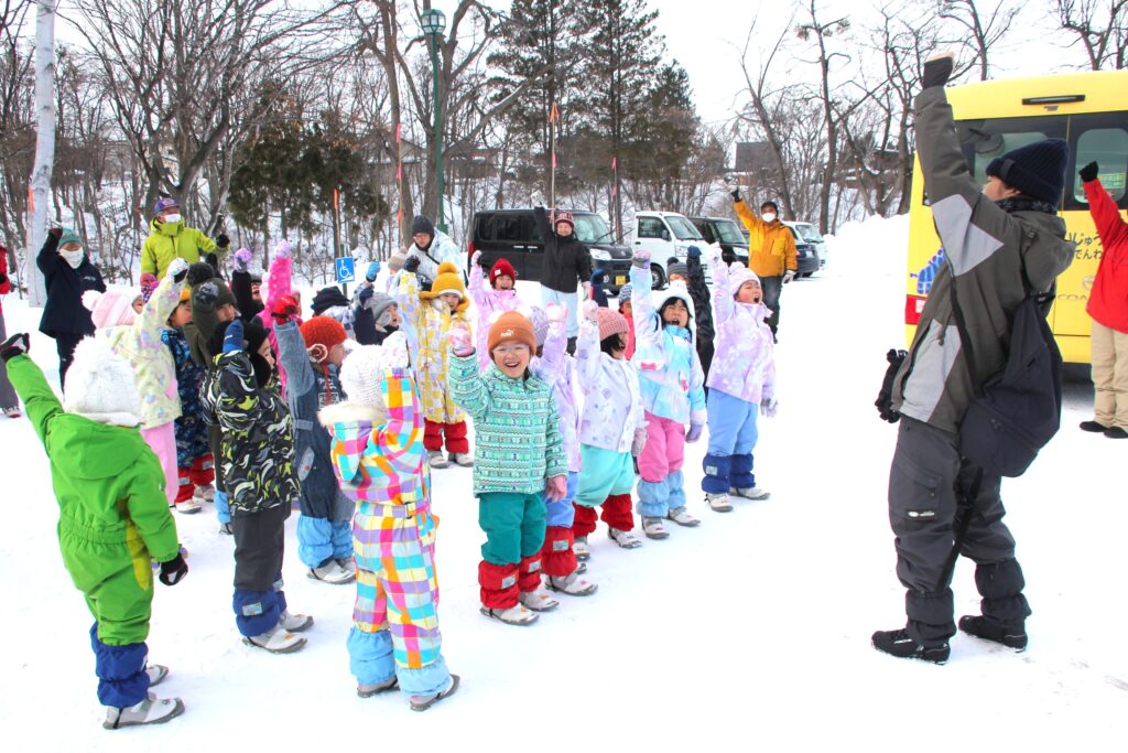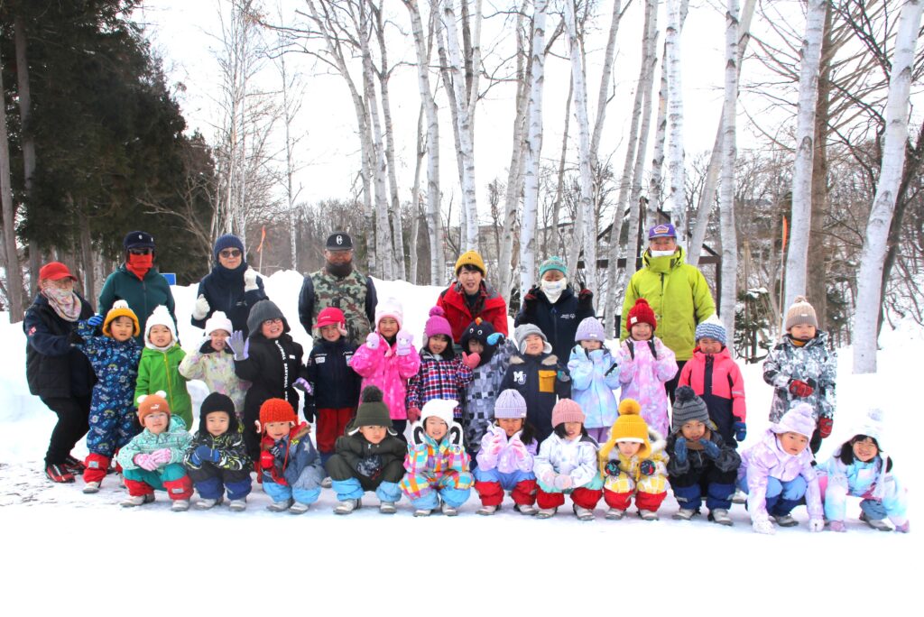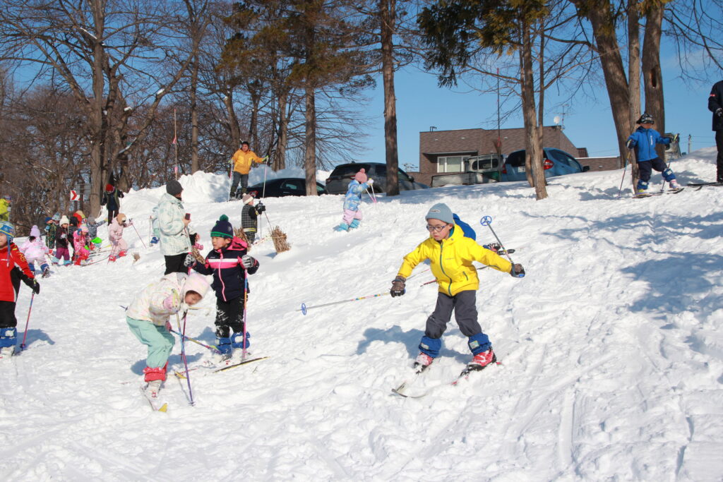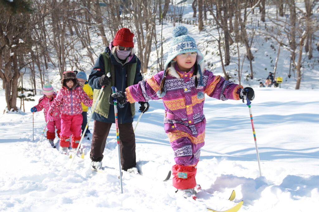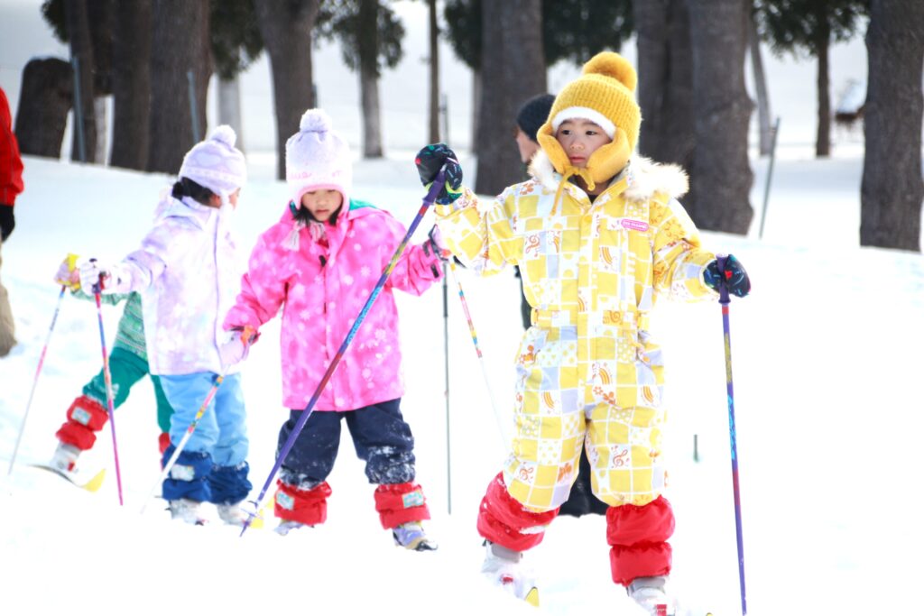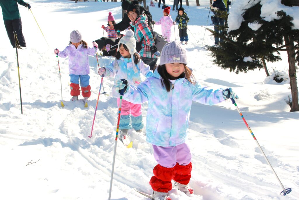 「エルマーとりゅう(年長)」組は1月29日(木)、「こんとあき(年中)」組は30日(金)に今年度最初の歩くスキーを実施しました。昨年に引き続き、「岩見沢歩くスキーの会」の皆様から親身なご指導をいただき、無事に1日目を終えることができました。年長さんたちにとっては1年ぶりとなるスキーでしたが、大人の力を借りることなくぐんぐん前へと進む姿は頼もしい限りでした。また、初めて歩くスキーに挑戦する年中の子どもたちも、「楽しい!」と笑顔で元気にがんばりました。年長・年中ともに今回を含め3日間「あやめ公園」での練習を行い、最後は「岩見沢公園」でスキー遠足を行います。新雪に残るリスやキツネ、ウサギの足あとを発見するなど、岩見沢の冬のすばらしさを味わいながら、強い体と最後までやり抜く気持ちを養います。