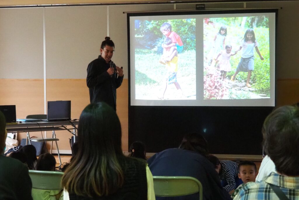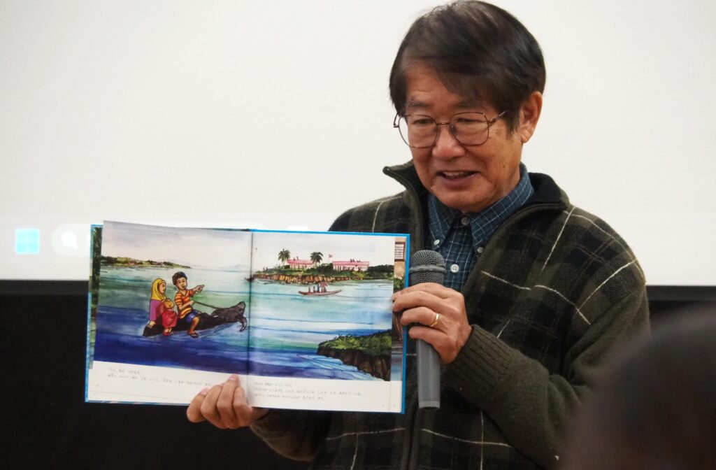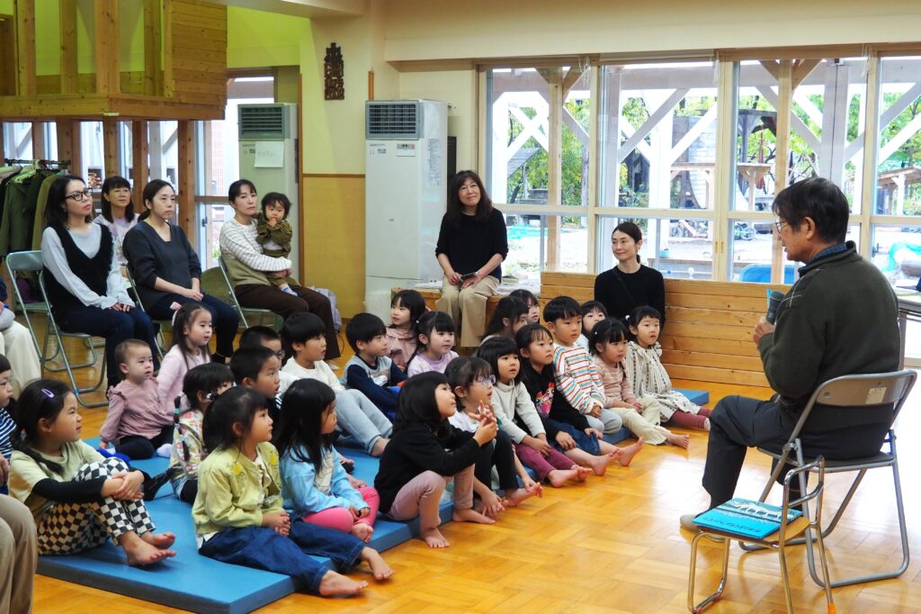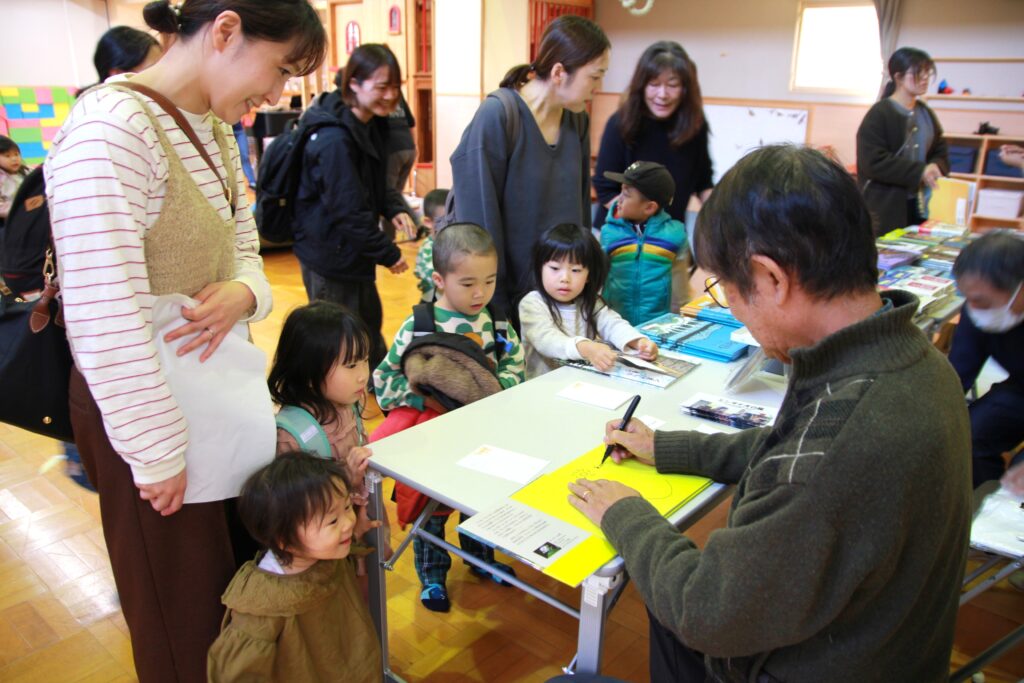 10月23日(木)、「読み聞かせは愛の体験」をテーマに、福武書店(現ベネッセ)児童書部初代編集長 松居 友さんによるご講演と読み聞かせ会を開催しました。講演の中では、松井氏が支援活動を行っているフィリピン・ミンダナオ島でたくましく生きる子どもたちの姿や、そこに図書館の設立を進めてきたお話など、物質的に豊かな日本が本当に幸せな国といえるのか考えさせられる内容でした。講演後は、松井さんによって出版された世界的な絵本作家 手島圭三郎さんの絵本と松井さんの著書にサインをいただきました。